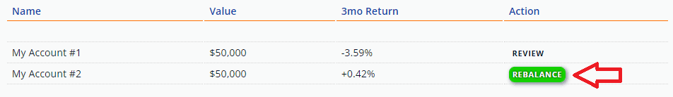 Also, your dashboard indicates which accounts require your attention, simply watch out for the blue rebalance buttons on your dashboard.